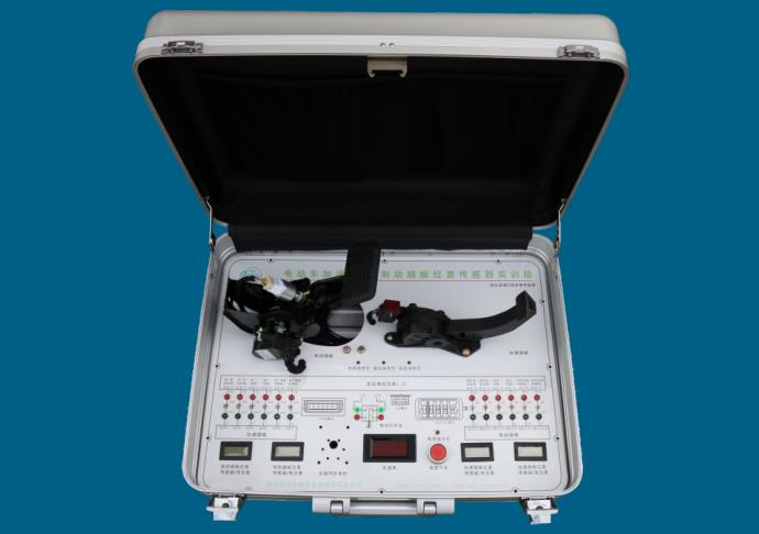 7.為了對電動車的加速踏板位置傳感器,制動踏板位置傳感器有一個深入了解,把它們的實物集成在—個實訓箱中,有各個傳感器的動態(tài)動作演示,真實再現(xiàn)加速踏板位置傳感器和制動踏板位置傳感器的工作原理和動作過程,同時配備有模擬的電動機受加速踏板和制動踏板控制,還有制動燈、制動開關的同步動作。