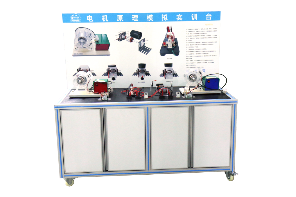 電機原理模擬實訓設備采用了直流永磁電機,演繹了直流永磁電機的結(jié)構(gòu)與工作原理,是一款電機學習的基礎入門課的實訓設備。本實訓臺把電機進行透明封裝的設計可讓學生更加清晰了解直流永磁電機的結(jié)構(gòu)與工作原理,讓學生看到電機內(nèi)部的運轉(zhuǎn)狀況。主要組成有:直流永磁電機模型(電機、電機控制器)、12V多組繞組直流永磁電機、12V單組繞組直流永磁電機、開關可調(diào)電源(帶短路保護)、電機調(diào)速器、永磁鐵、檢測端子、連接線、電源輸入口等。