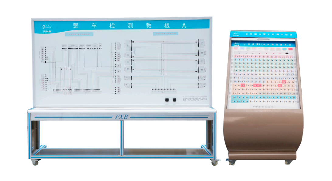 同時從中控臺引出信號到教板上,教板上繪制原車主要控制單元和接插件端子,直接在端子上測量整車實時信號,教板長2.4米,共2個測量教板,可供6組學員同時測量,掌握不同控制單元參數(shù)變化規(guī)律。