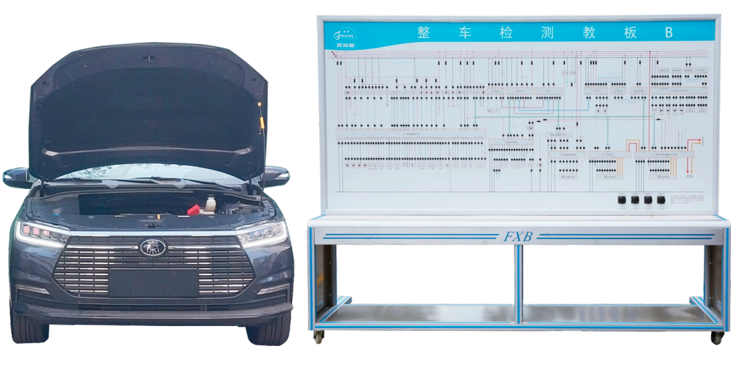 該設備和可正常運行的全新比亞迪秦EV(3+3平臺)純電動轎車配合使用,在不破壞原車任意一條線束的基礎上將整車轉變?yōu)樵诰€檢測故障教具車,可實時檢測與診斷原車整車控制器VCU控制單元、動力電池管理系統(tǒng)BMS控制單元、驅動系統(tǒng)三合一電機控制器控制單元、高壓三合一充配電總成控制單元、自動空調管理控制單元、檔位控制單元、組合儀表控制單元、網(wǎng)關控制單元等的動、靜態(tài)信號參數(shù)。采用撥檔機械設故,可對主要控制單元主要線路進行斷路、虛接、短路等現(xiàn)象故障設置,設故方法可靠。適用于中高等職業(yè)技術院校、普通教育類學院和培訓機構對純電動整車理論和維修實訓的教學需要。