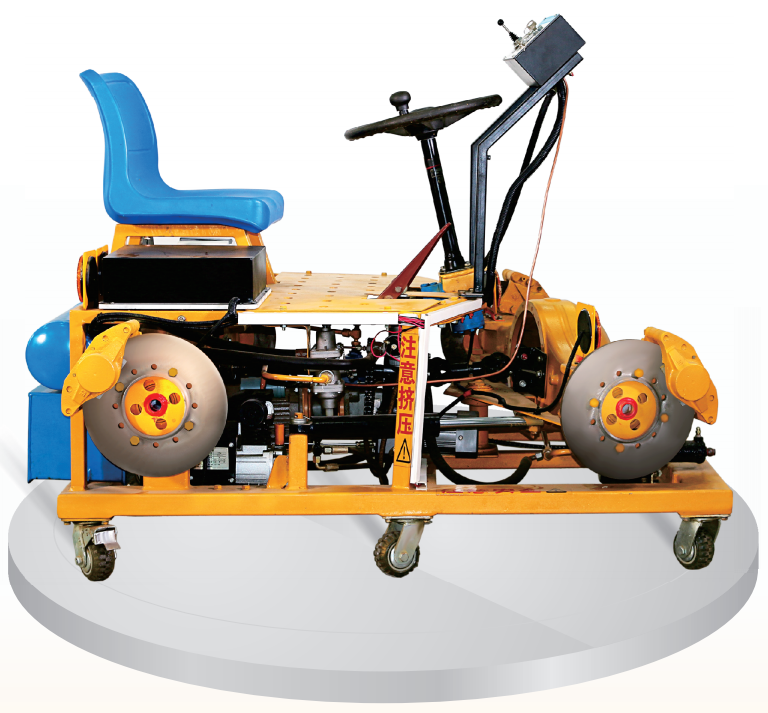產品簡介該設備以裝載機原車轉向器為基礎,全面展示了液壓助力轉向系統(tǒng)的組成結構和工作過程。適用于中高等職業(yè)技術院校、普通教育類學院和培訓機構對液壓助力轉向系統(tǒng)的理論和維修實訓的教學需要。功能特點·采用裝載機鉸接式液壓系統(tǒng)的轉向器、液壓油缸等零部件,可真實運行鉸接式轉向系統(tǒng)的組成結構和工作過程?!び呻姍C帶動液壓助力泵工作,操縱方向盤轉向油缸可實現(xiàn)往復運動,模擬裝載機鉸接式轉向系統(tǒng)左右轉向過程?!っ姘迳?/p>