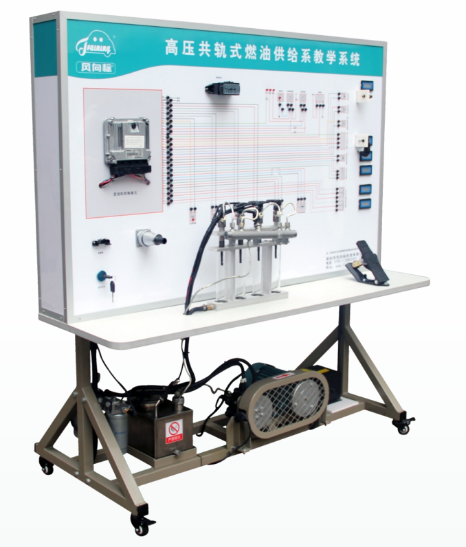 2. 示教板面板采用4mm厚耐腐蝕、耐創(chuàng)擊、耐污染、防火、防潮的高級(jí)鋁塑板,表面經(jīng)特殊工藝噴涂底漆處理; 面板打印有永不褪色的彩色電路圖與工作原理示意圖,表面噴涂光油; 學(xué)員可直觀對(duì)照電路圖和實(shí)物,認(rèn)識(shí)和分析電控柴油共軌噴射系統(tǒng)的工作原理。