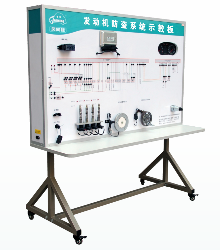 3. 示教板面板采用4mm厚耐腐蝕、耐創(chuàng)擊、耐污染、防火、防潮的高級鋁塑板,表面經(jīng)特殊工藝噴涂底漆處理;面板打印有永不褪色的彩色電路圖與工作原理示意圖,表面噴涂光油; 學(xué)員可直觀對照電路圖和實物,認識和分析汽車發(fā)動機防盜系統(tǒng)的工作原理。