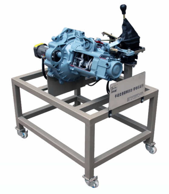 一、功能特點(diǎn)(注∶ 以大眾捷達(dá)前驅(qū)為例)1.采用大眾捷達(dá)前驅(qū)手動(dòng)變速器進(jìn)行剖面處理,各部件齊全,剖面位置合理,可全面展示內(nèi)部結(jié)構(gòu)和部件的運(yùn)動(dòng)情況,適合于手動(dòng)變速器原理和機(jī)械機(jī)構(gòu)的教學(xué)。2.對(duì)變速器各機(jī)械剖面采用不同顏色的油漆進(jìn)行噴涂。3.由三相齒輪減速感應(yīng)電機(jī)帶動(dòng)變速器輸入軸運(yùn)轉(zhuǎn),真實(shí)演示不同檔位下機(jī)械運(yùn)動(dòng)的傳遞過程。4. 移動(dòng)臺(tái)架采用了高強(qiáng)度的鋼結(jié)構(gòu)焊接,表面經(jīng)噴涂工藝處理。移動(dòng)臺(tái)架底部帶有自鎖