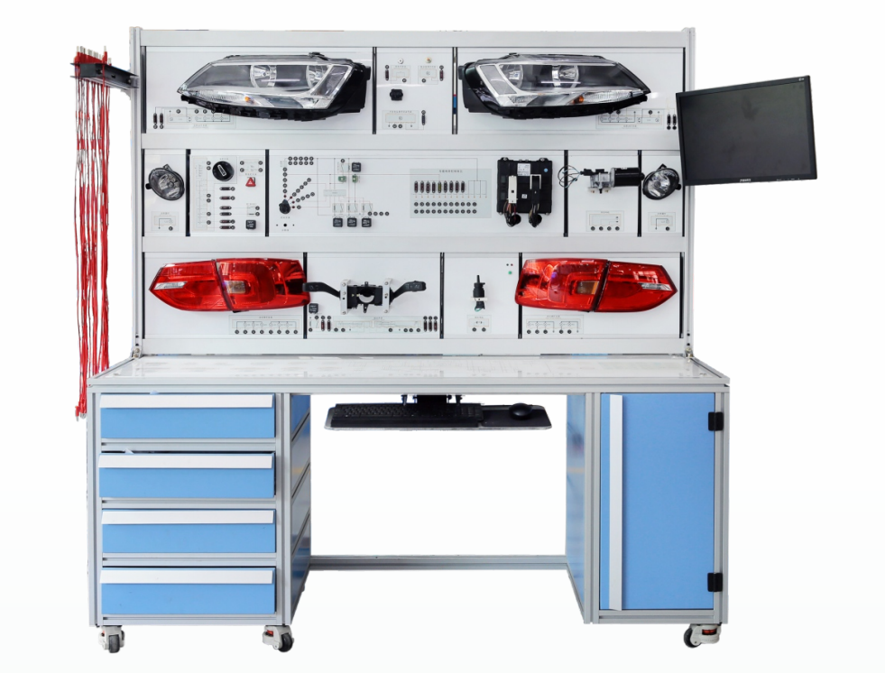 該系統(tǒng)是軟硬件結(jié)合的綜合教學實訓系統(tǒng)。課程內(nèi)容涵蓋汽車燈光系統(tǒng)汽車基礎知識,學生能夠進行接線,接線后系統(tǒng)可以判斷接線是否正確,故障診斷、 虛擬實訓測量, 可實現(xiàn)與實車系統(tǒng)的通訊診斷。每門課程根據(jù)實際臺架進行原理講解、三維展示和實驗操作更夠傳授給學生系統(tǒng)化的汽車原理和技術(shù)知識等。