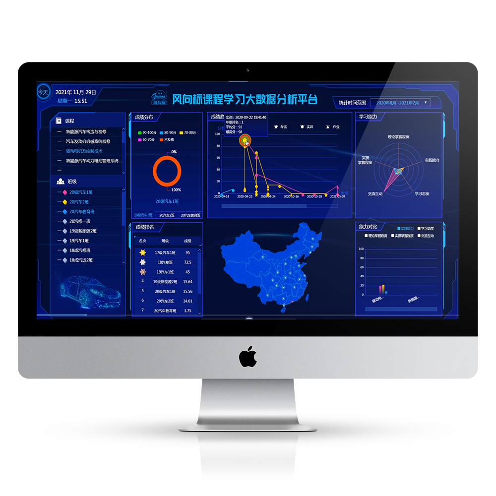 云平臺(tái)大數(shù)據(jù)分析:教學(xué)過(guò)程數(shù)據(jù)采集,以及相應(yīng)的內(nèi)部數(shù)據(jù)分析和云端大數(shù)據(jù)分析,以教學(xué)質(zhì)量為出發(fā)點(diǎn),通過(guò)統(tǒng)計(jì)分析,客觀(guān)反映教師授課、學(xué)生學(xué)習(xí)過(guò)程中存在的不足與薄弱點(diǎn),為教師授課以及學(xué)生學(xué)習(xí)調(diào)整提供實(shí)時(shí)有效依據(jù)。