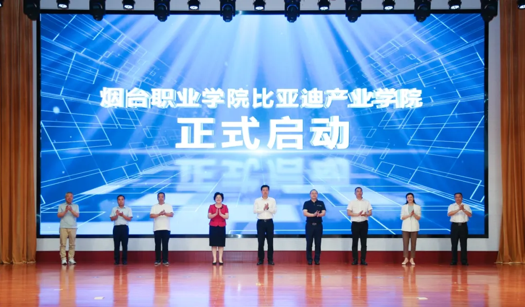 2024年6月13日上午,由煙臺職業(yè)學(xué)院、比亞迪股份有限公司及深圳風向標產(chǎn)教融科技有限公司三方共建的煙臺職業(yè)學(xué)院比亞迪產(chǎn)業(yè)學(xué)院舉行成立儀式。標志著三方深度產(chǎn)教融合、共育高技能人才的戰(zhàn)略合作正式啟動,三方將共同探索新質(zhì)生產(chǎn)力背景下新能源汽車產(chǎn)業(yè)技能人才培養(yǎng)新范式。