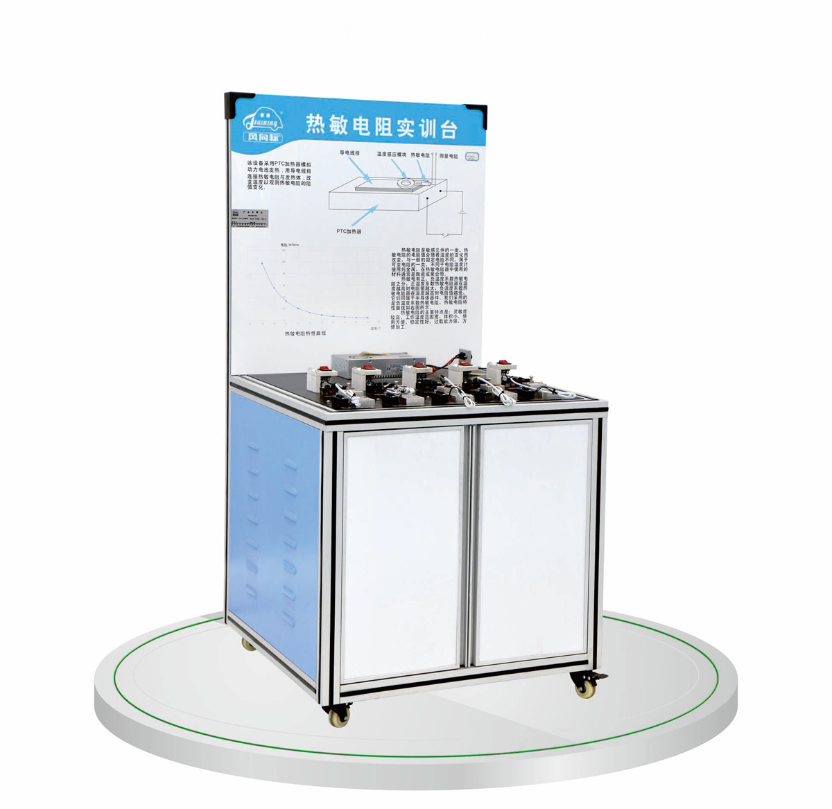 熱敏電阻4件(其中兩件固定,兩件備用),PTC恒溫發(fā)熱片2個(gè),數(shù)字式萬用表1件,開關(guān)電源1件,手動(dòng)帶燈開關(guān)2件,可移動(dòng)平臺(tái)和教板。