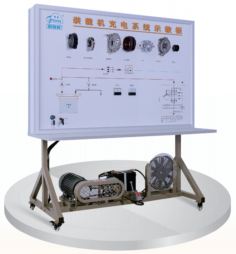 檢測(cè)控制面板、點(diǎn)火開(kāi)關(guān)、保險(xiǎn)絲、發(fā)電機(jī)總成、發(fā)電機(jī)總成分解部件、充電指示燈、三相異步電動(dòng)機(jī)、電壓表、電流表、蓄電池、電源總開(kāi)關(guān)、智能故障設(shè)置和考核系統(tǒng),移動(dòng)臺(tái)架 (帶自鎖腳輪裝置)。