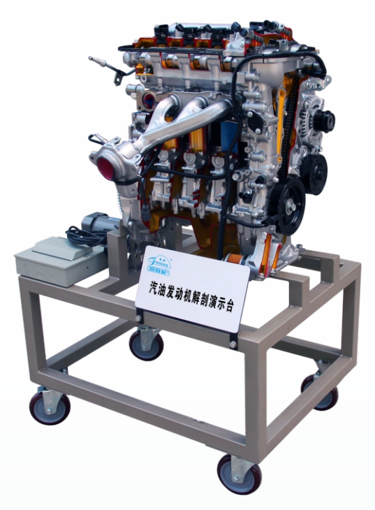 一、產(chǎn)品簡(jiǎn)介該設(shè)備采用電控汽油發(fā)動(dòng)機(jī)總成進(jìn)行剖面處理,各部件齊全,剖面位置合理,能全面展示汽油發(fā)動(dòng)機(jī)內(nèi)外部結(jié)構(gòu)和部件的運(yùn)動(dòng)情況,適用于汽油發(fā)動(dòng)機(jī)原理和機(jī)械機(jī)構(gòu)的教學(xué)。二、功能特點(diǎn)1、采用電控汽油發(fā)動(dòng)機(jī)實(shí)物總成進(jìn)行機(jī)構(gòu)切剖,充分展示汽油發(fā)動(dòng)機(jī)機(jī)構(gòu)部分的內(nèi)外結(jié)構(gòu)。2、對(duì)汽油發(fā)動(dòng)機(jī)各機(jī)械剖面采用不同顏色的油漆進(jìn)行噴涂。3、由三相齒輪減速感應(yīng)電機(jī)帶動(dòng)汽油發(fā)動(dòng)機(jī)曲軸做低速運(yùn)轉(zhuǎn),真實(shí)演示汽油發(fā)動(dòng)機(jī)內(nèi)部機(jī)械部件