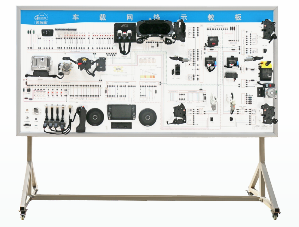 3. 示教板面板采用4mm厚耐腐蝕、耐創(chuàng)擊、耐污染、防火、防潮的高級鋁塑板,表面經(jīng)特殊工藝噴涂底漆處理;面板打印有永不褪色的彩色電路圖,表面噴涂光油;學員可直觀對照電路圖和實物,認識和分析車載網(wǎng)絡(luò)系統(tǒng)的工作原理。