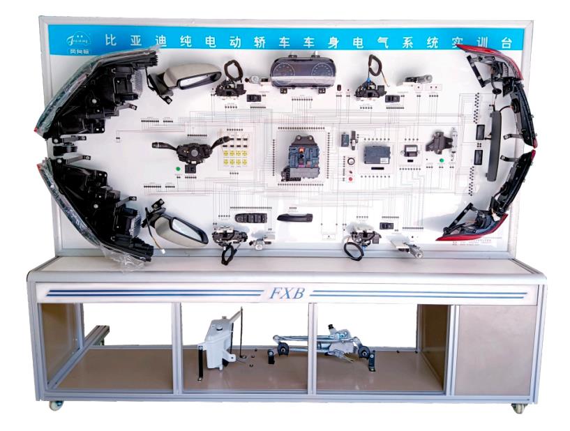 該設備采用比亞迪秦EV純電動汽車車身電器實物為基礎,充分展示汽車配電模塊系統(tǒng)、儀表系統(tǒng)、燈光系統(tǒng)、雨刮系統(tǒng)、喇叭系統(tǒng)、外后視鏡系統(tǒng)、電動車窗系統(tǒng)、門鎖系統(tǒng)、智能鑰匙防盜系統(tǒng)、網(wǎng)關系統(tǒng)等汽車電器各系統(tǒng)的組成結構,展示車身電器所有模塊,并可在上面進行動靜態(tài)數(shù)據(jù)采集和實現(xiàn)車身電器功能等實訓;配備機械設置系統(tǒng),采用鍍金U型插頭,設故方法可靠穩(wěn)定,滿足多元化設故需求,適用于高等職業(yè)技術院校普通教育類學院和培訓機構對車身電器理論和維修實訓的教學需要。