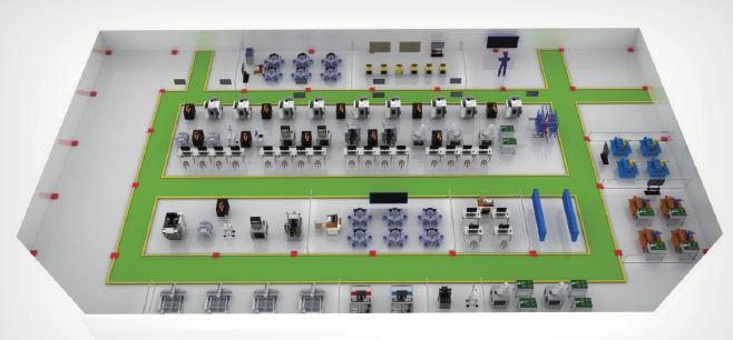 數(shù)字化設(shè)計與制造創(chuàng)新中心使用3D數(shù)字化平臺開發(fā)一套與實(shí)物系統(tǒng)相關(guān)聯(lián)的數(shù)字化虛實(shí)結(jié)合聯(lián)動軟件系統(tǒng),通過虛擬3D模型實(shí)時跟蹤監(jiān)控現(xiàn)場 實(shí)物產(chǎn)線的運(yùn)行。包含立體倉庫聯(lián)動運(yùn)行、工業(yè)機(jī)器人聯(lián)動運(yùn)行、數(shù)控機(jī)床聯(lián)動運(yùn)行、AGV小車聯(lián)動運(yùn)行、工作站聯(lián) 動運(yùn)行等,通過基于現(xiàn)場實(shí)物產(chǎn)線的1:1模型進(jìn)行開發(fā)設(shè)計,軟件通過與現(xiàn)場控制器進(jìn)行實(shí)時數(shù)據(jù)通訊采集現(xiàn)場產(chǎn)線 狀態(tài)進(jìn)行虛擬實(shí)時運(yùn)行。云制造實(shí)訓(xùn)中心以智能制造云生產(chǎn)系統(tǒng)與
