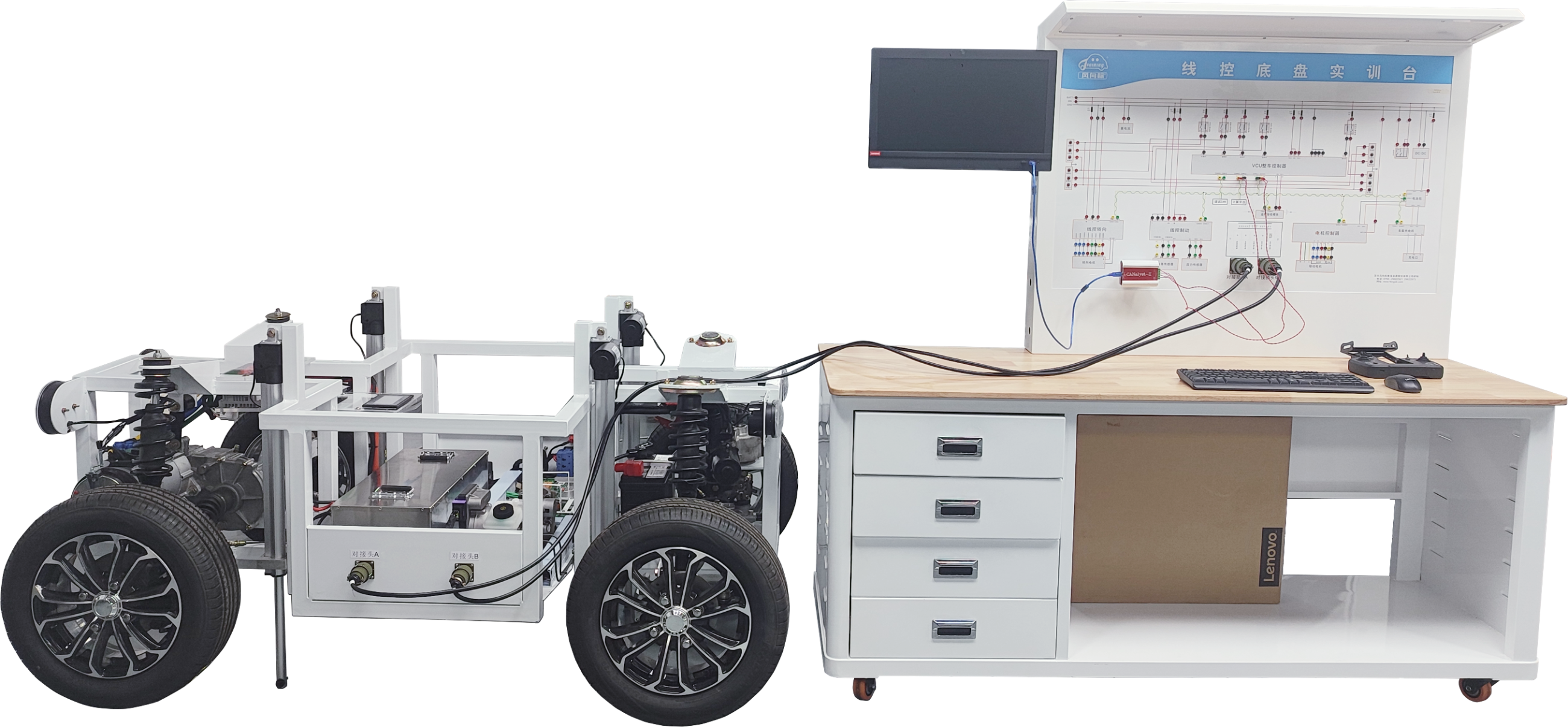 【線控底盤實(shí)訓(xùn)臺】線控底盤實(shí)訓(xùn)臺由示教板和線控底盤車兩部分組成,示教板采用金工藝,面板繪制線控底盤系統(tǒng)電路圖、線控底盤系統(tǒng)拓?fù)鋱D、保險(xiǎn)盒功能圖等內(nèi)容;底盤部分由48V鯉動力電池、電池管理系統(tǒng)、線控轉(zhuǎn)向系統(tǒng)、線控制動系統(tǒng)、線控?zé)艄庀到y(tǒng)、VCU整車控制器及CAN 網(wǎng)絡(luò)通訊、無線控制系統(tǒng)、故障設(shè)置系統(tǒng)組成。